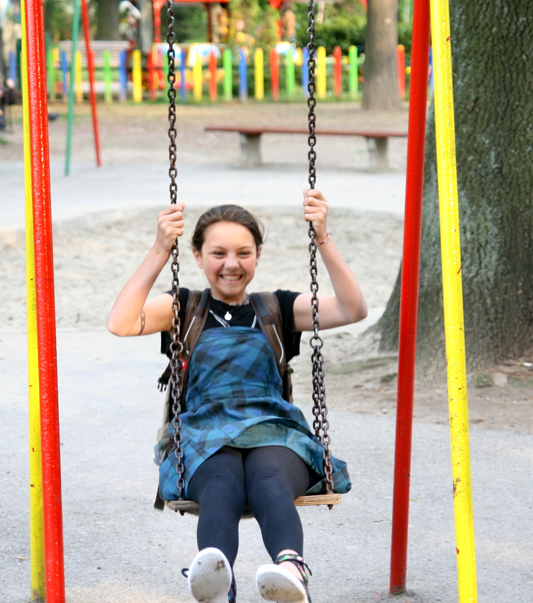 We watched our fifteen year old, kick off her shoes and climb and slide and swing like she was five again.