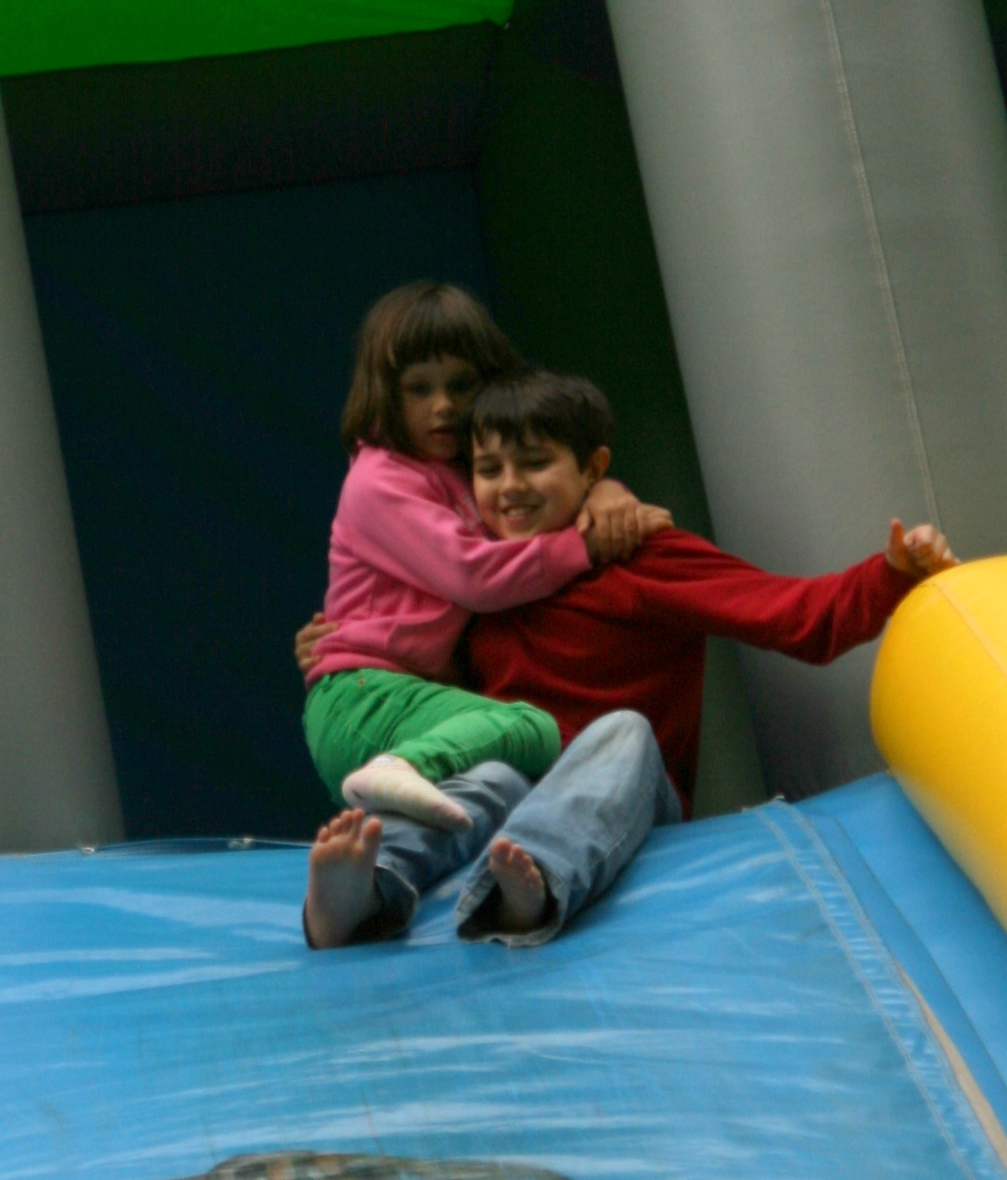 We watched Seth take on the role of big brother as he showed Sophia how to climb up the slide for her very first time, and then allowed her to hold on tight to his neck